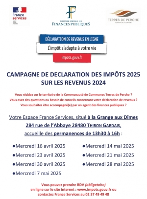 Les Espaces France Services du territoire accueille une permanence des impôts pour la campagne 2025 de déclaration de revenus 2024 du 10 avril au 28 mai.