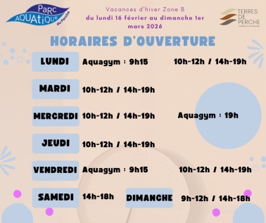 Attention pendant ces 2 semaines, le Parc Aquatique a mis en place des horaires d'ouverture au public et d'aquagym différents